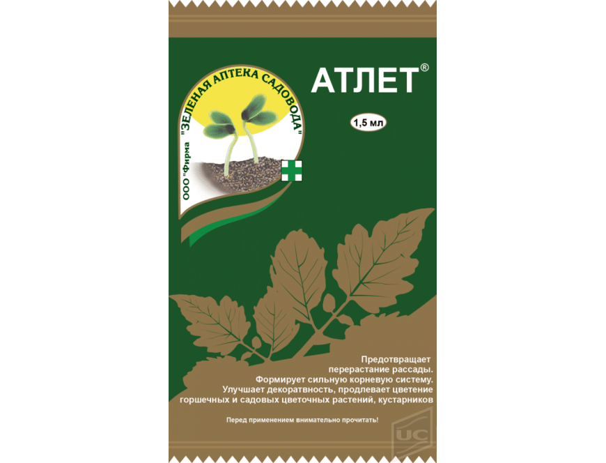 Регулятор роста растений «Атлет» - замедляет рост надземной части, вызывает укорачивание и утолщение стебля, увеличивает ширину листьев. «Атлет» способствует тому, что в растениях происходит перераспределение питательных веществ, при котором большая часть питательных веществ поступает в корни, вызывая их усиленный рост. Благодаря препарату «Атлет» рассада не вытягивается даже при низкой освещенности, загущении и высокой температуре.