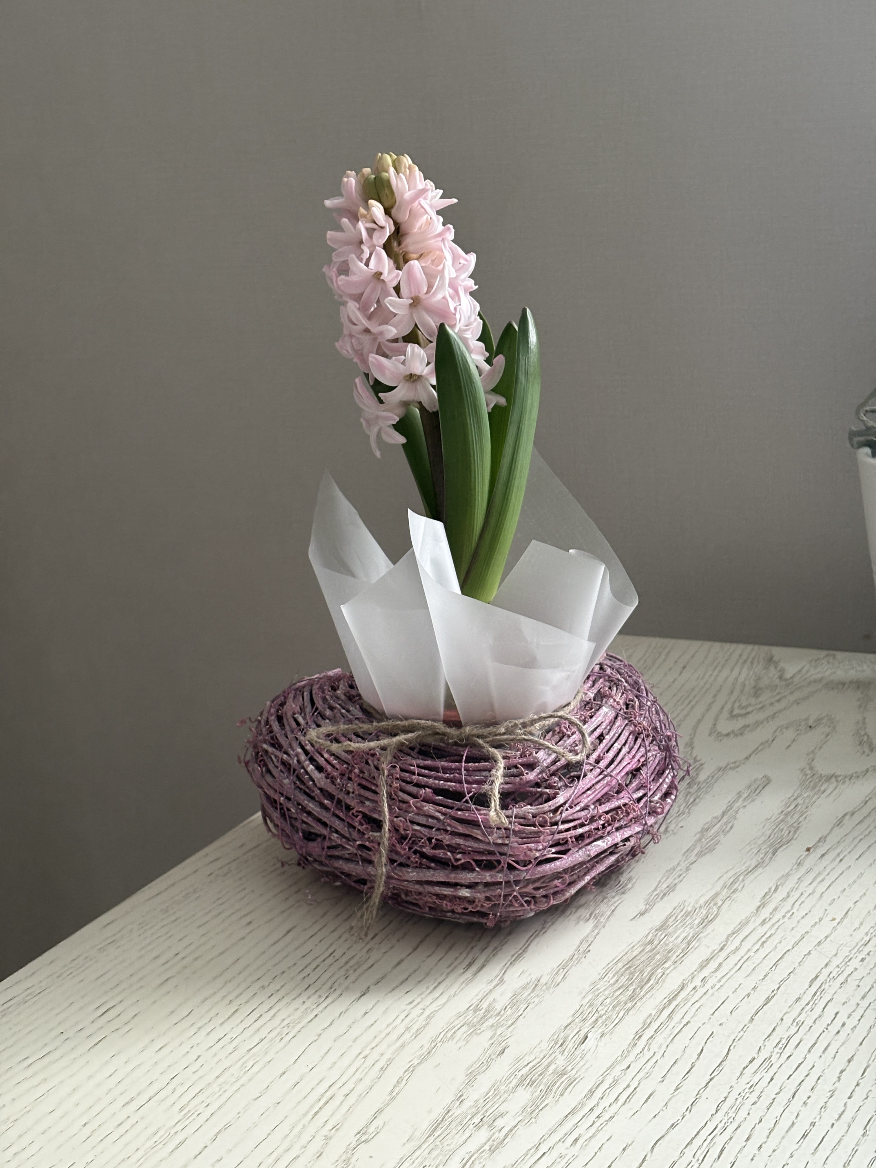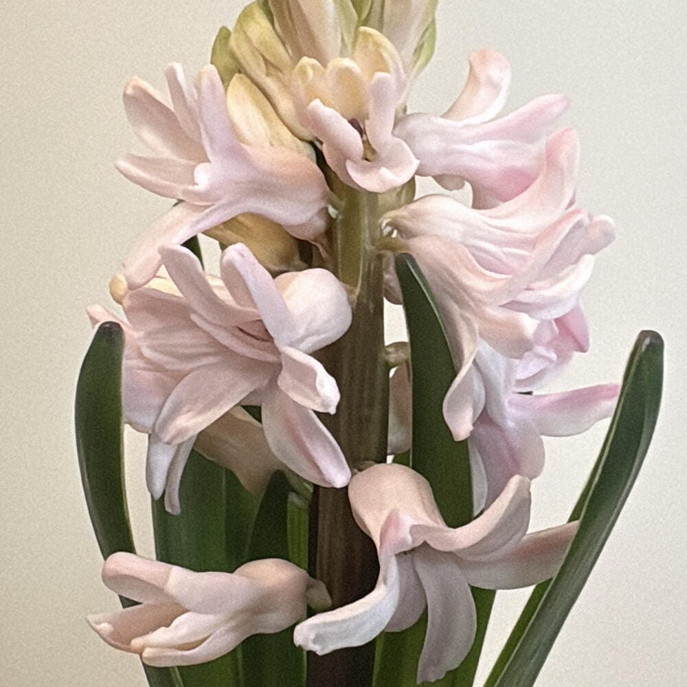 - Для продления цветения важно прохладное содержание — оптимально 15–18°C (максимум до 20°C). В жаре гиацинт отцветет слишком быстро.