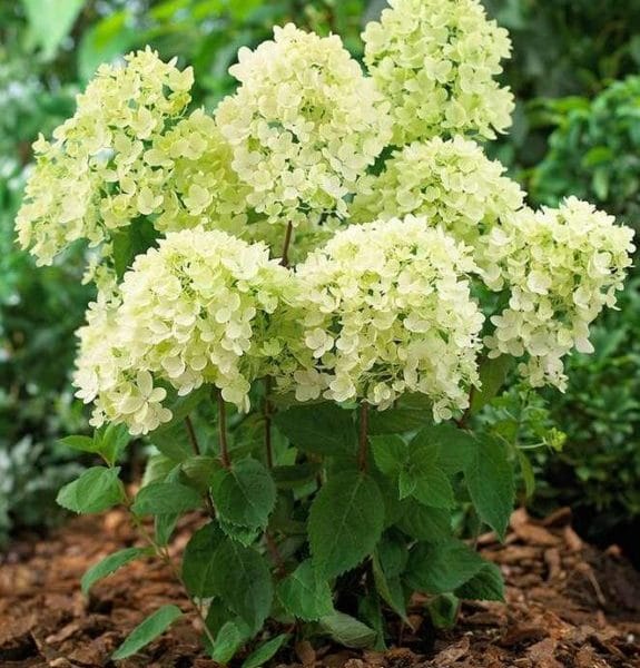 Гортензия метельчатая Бомбшелл (Hydrangeapaniculata bombshell) – относительно молодой компактный сорт голландского происхождения. Кустарник достигает в высоту 70-90 см, в то время как диаметр взрослого куста составляет в среднем 100-120 см. Сорт сильно ветвится, но при этом имеет аккуратную шарообразную форму. Побеги кустарника достаточно тонкие, окрашенные в красно-коричневые тона. Листья темно-зеленые, крупные, слегка зазубренные по краям. По форме они напоминают яйцо.