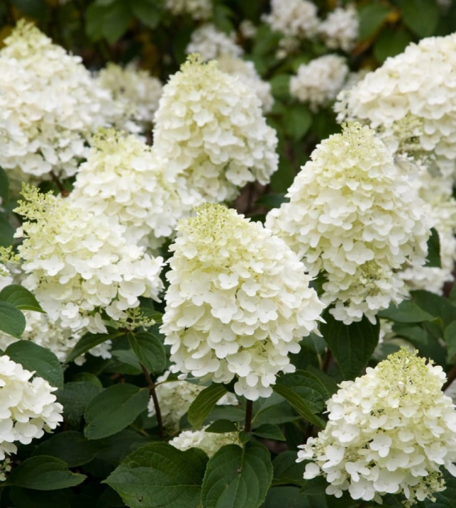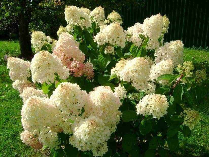 Гортензия метельчатая Сильвер Доллар (Hudrangea paniculata Silver Dollar) цветущий кустарник, имеющий высоту 1,5-2 м, но иногда вырастающий и до 3 м. Куст пышный и раскидистый, его диаметр нередко превышает 2 м. Растет достаточно быстро, поэтому при высадке саженца необходимо учитывать его будущие размеры. Побеги крепкие и пряморастущие, не склонны к пониканию и не требуют подвязки. Они прекрасно выдерживают вес многочисленных соцветий. Кора растения имеет темно коричневый цвет, на молодых побегах – гладкая, а на более старых – шелушится и отслаивается. Листья растения имеют темно-зеленый цвет и овальную форму.