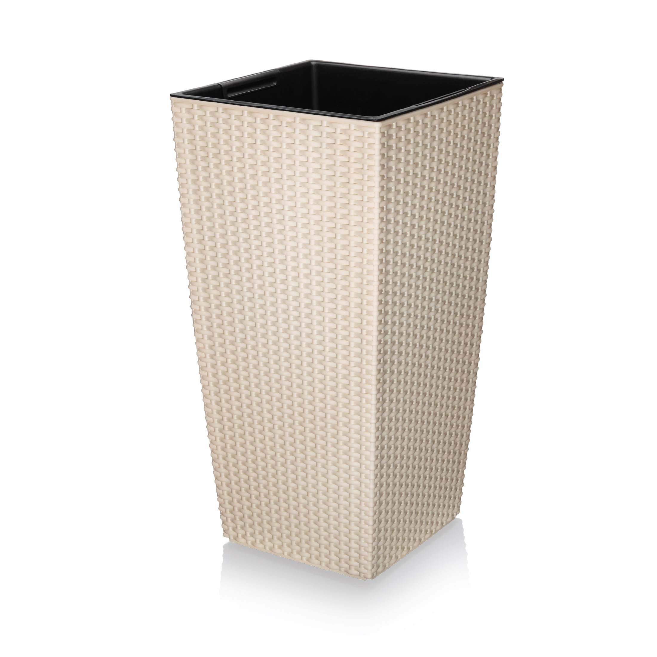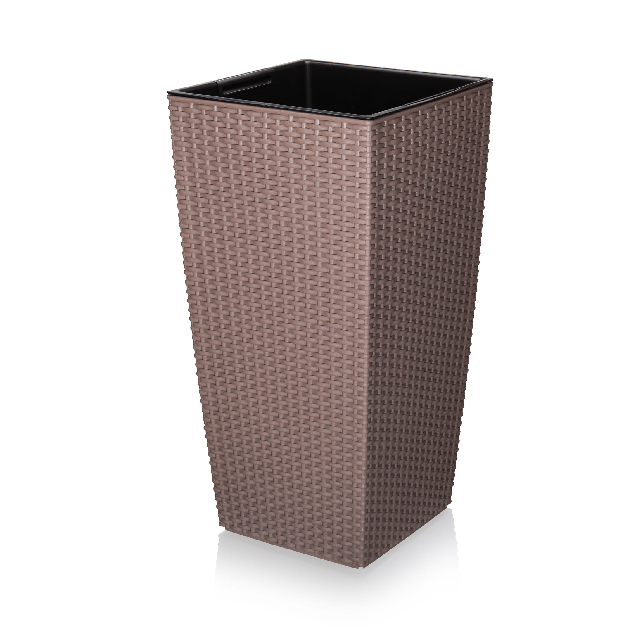 Данная модель кашпо выполнена из высокопрочного пластика, с имитацией под натуральный ротанг, что делает его стильным элементом декора. Специальная внутренняя вставка, которая имеет удобные ручки, облегчит процесс высадки растения и уход за ним. Влага в пластиковых горшках задерживается дольше и растения не нуждаются в частом поливе. Размеры изделия - высота 565 мм, длина и ширина – 295 мм, высота вставки - 285 мм, длина и ширина – 263 мм, объём вставки – 17 л.