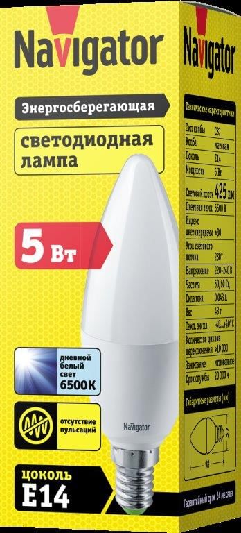 Лампа ЛЕД E14 5Вт свеча мат.6,5К NLLB-P-C37-5-230-6.5K-E14-FR Navigator 82494 Navigator