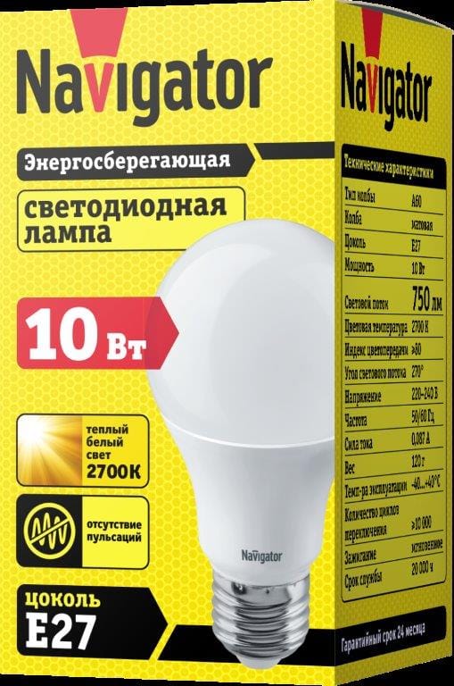 Лампа ЛЕД E27 10Вт 2,7К NLLB-A60-10-230-2.7K-E27 Navigator 82485 Navigator