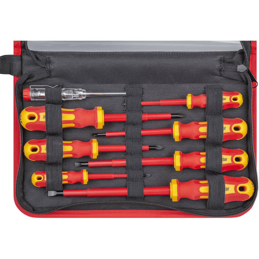 Набор диэлектрических отверток NHT-Оtd01-H8 предназначен для проведения широкого спектра профессиональных электротехнических и электромонтажных работ в установках с напряжением до 1000 В. Компактный прочный тканевый кофр обеспечивает безопасное хранение и транспортировку отверток.