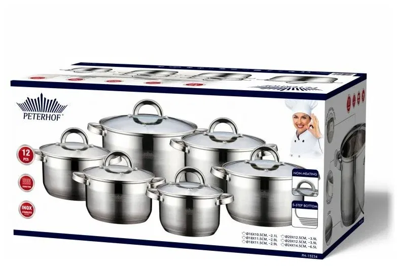Набор кастрюль PH-15234 2,1/2x2,9/2x3,9/6,5л Peterhof
