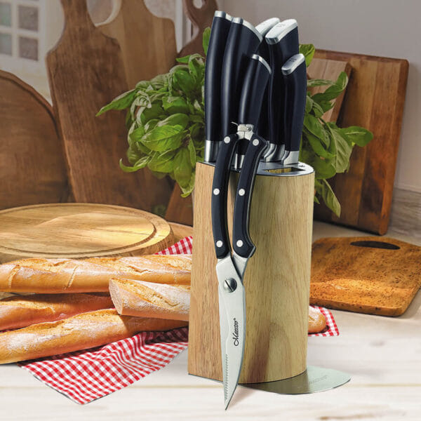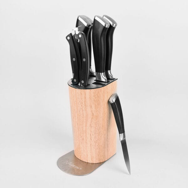 • подставка для ножей (размер: 21х9,8х15,5 см), материал: дерево, нержавеюшая сталь