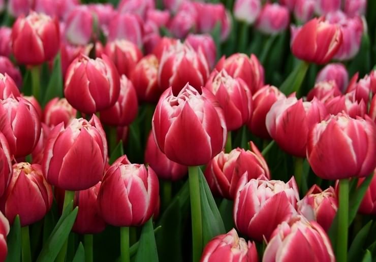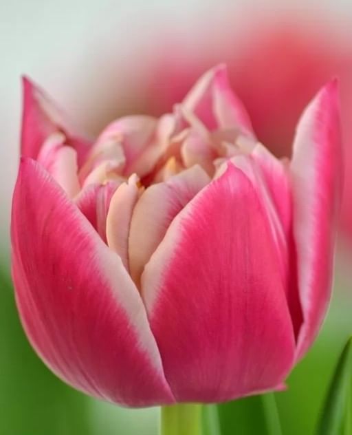 Тюльпан «Колумбус» — это ранний махровый сорт с пышными пионовидными цветками насыщенно-розового или малинового цвета с кремово-белой каймой. Высота растения составляет 40-50 см, а диаметр цветка может достигать 10-15 см. Этот сорт ценится за прочные стебли и долгие сроки цветения, что делает его популярным как для украшения садов, так и для срезки.